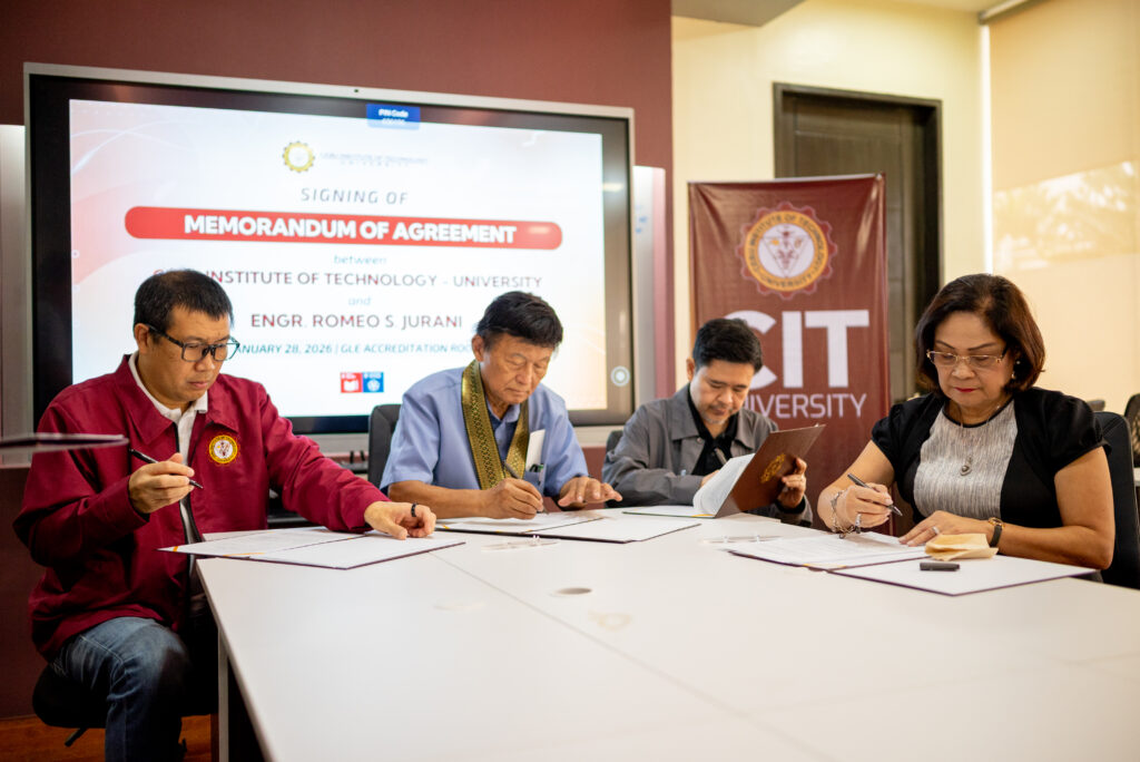 The MOA was signed by CIT University President, Engr. Bernard Nicolas E. Villamor, Vice President for Administration, Mr. John Gregory B. Escario, Vice President for Academic Affairs, Atty. Corazon Evangelista-Valencia, and Engr. Jurani, marking a key moment in the university’s journey to continuously improve its educational offerings in the Mining Engineering department. This collaboration also aligns with CIT University’s vision to create measurable and lasting impacts for future generations of Technologians.